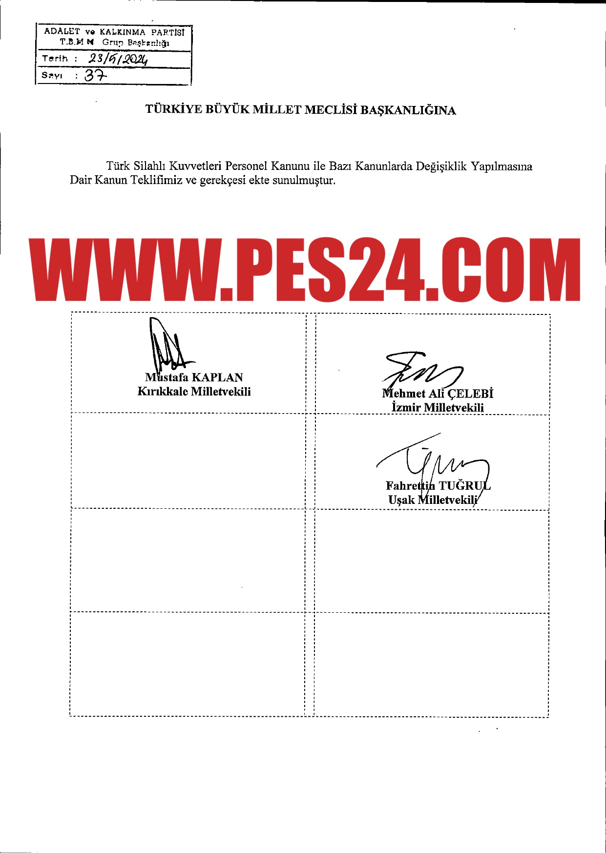 AKP TSK Personel Kanunu ile Bazı Kanunlarda Değişiklik Yapılmasına Dair Kanun Teklifi’ni TBMM Başkanlığı’na sundu.