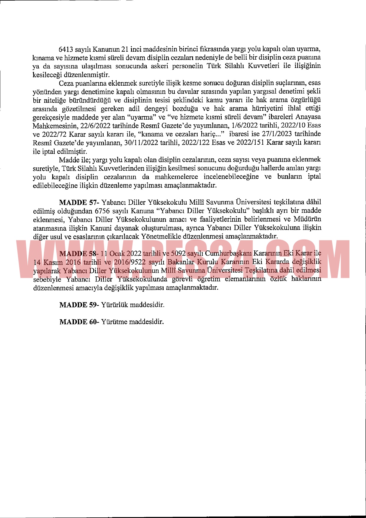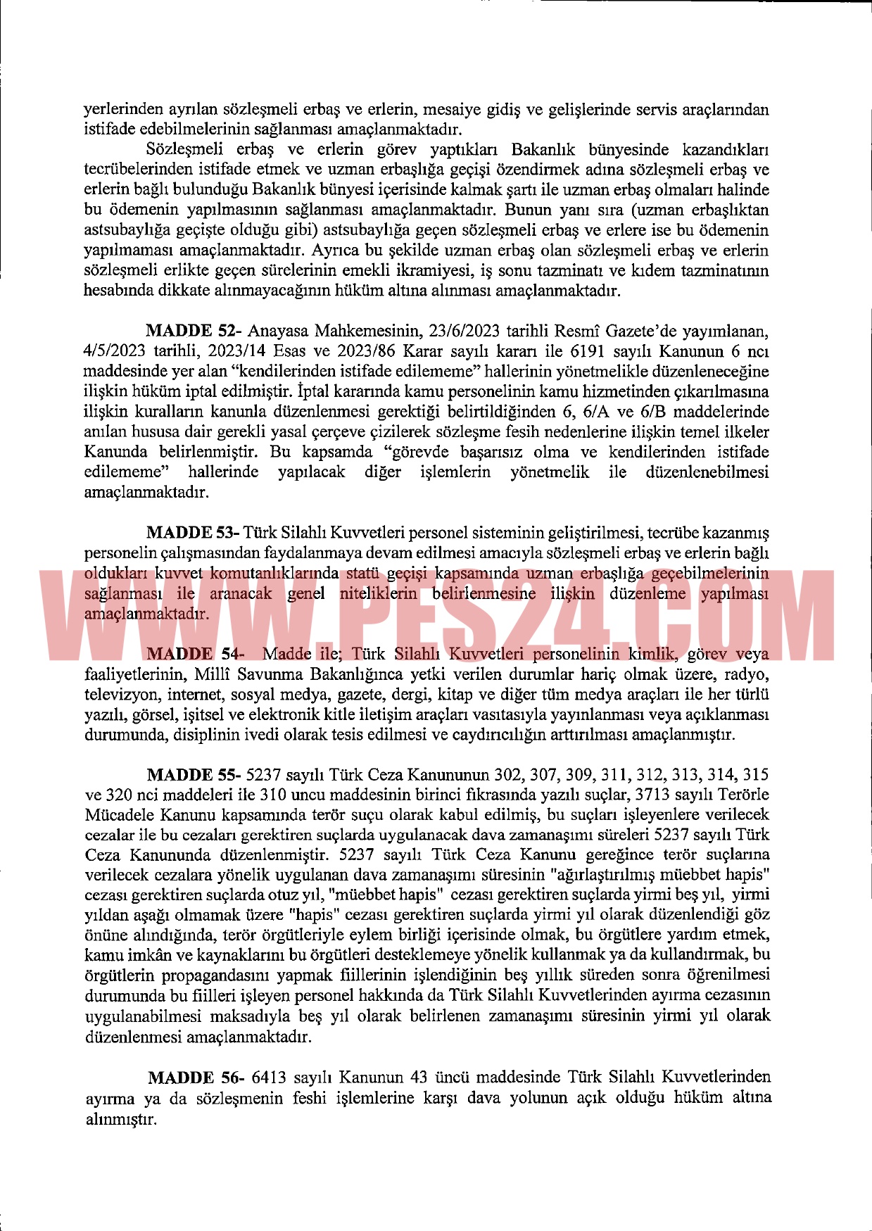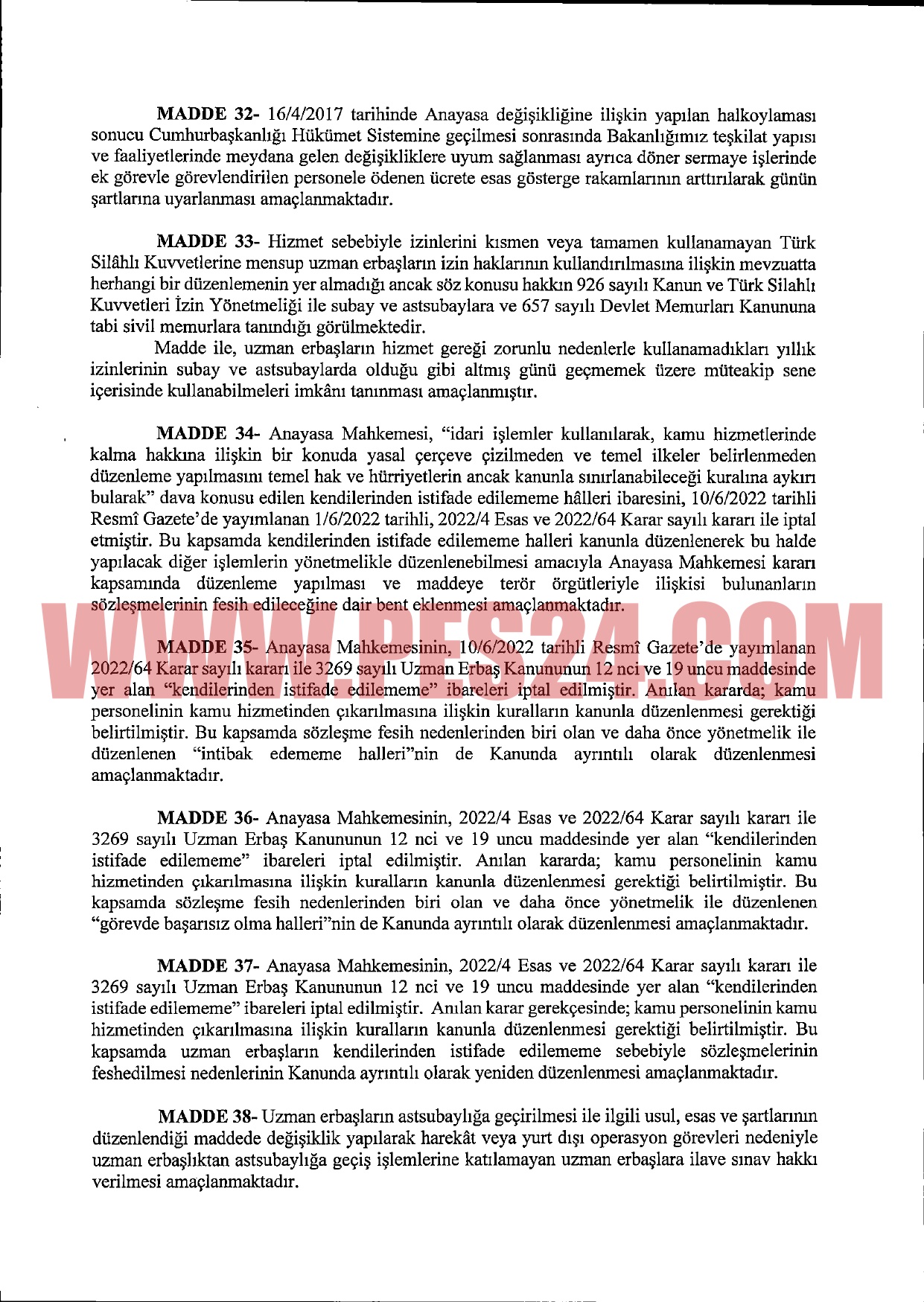 Anayasa Mahkemesinin aldığı karara uyum sağlamak amacıyla, Sözleşmeli Erbaş ve Er Kanunu’nda düzenleme öngörülüyor.