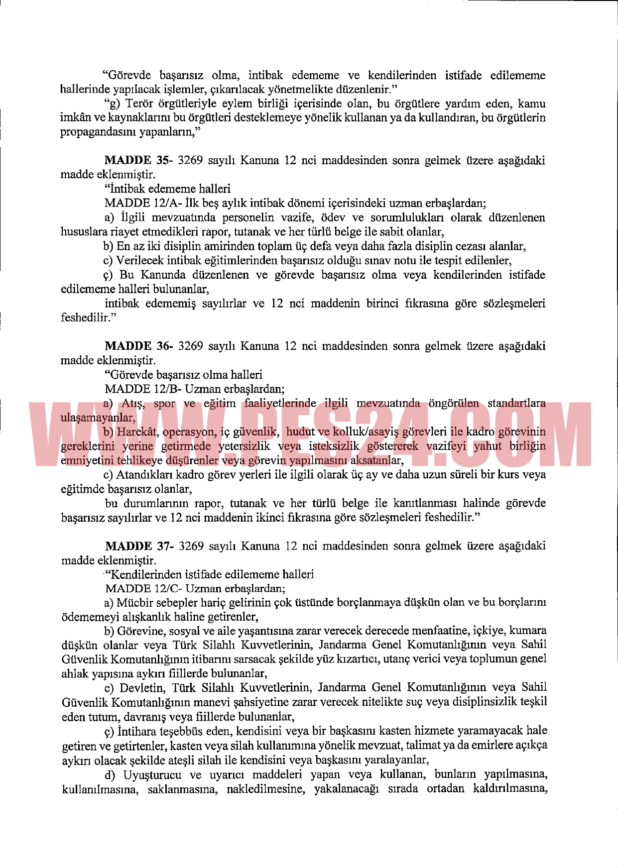 Sözleşmeli erbaş ve erlerden, atış, spor ve eğitim faaliyetlerinde ilgili mevzuatta öngörülen standartlara ulaşamayanlar, harekat, operasyon, iç güvenlik, hudut ve kolluk/asayiş görevleri ile kadro görevinin gereklerini yerine getirmede yetersizlik veya isteksizlik göstererek vazifeyi yahut birliğin emniyetini tehlikeye düşürenler veya görevin yapılmasını aksatanlar, bu durumlarının rapor, tutanak ve her türlü belge ile kanıtlanması halinde görevde başarısız sayılacak, sözleşmeleri feshedilecek.