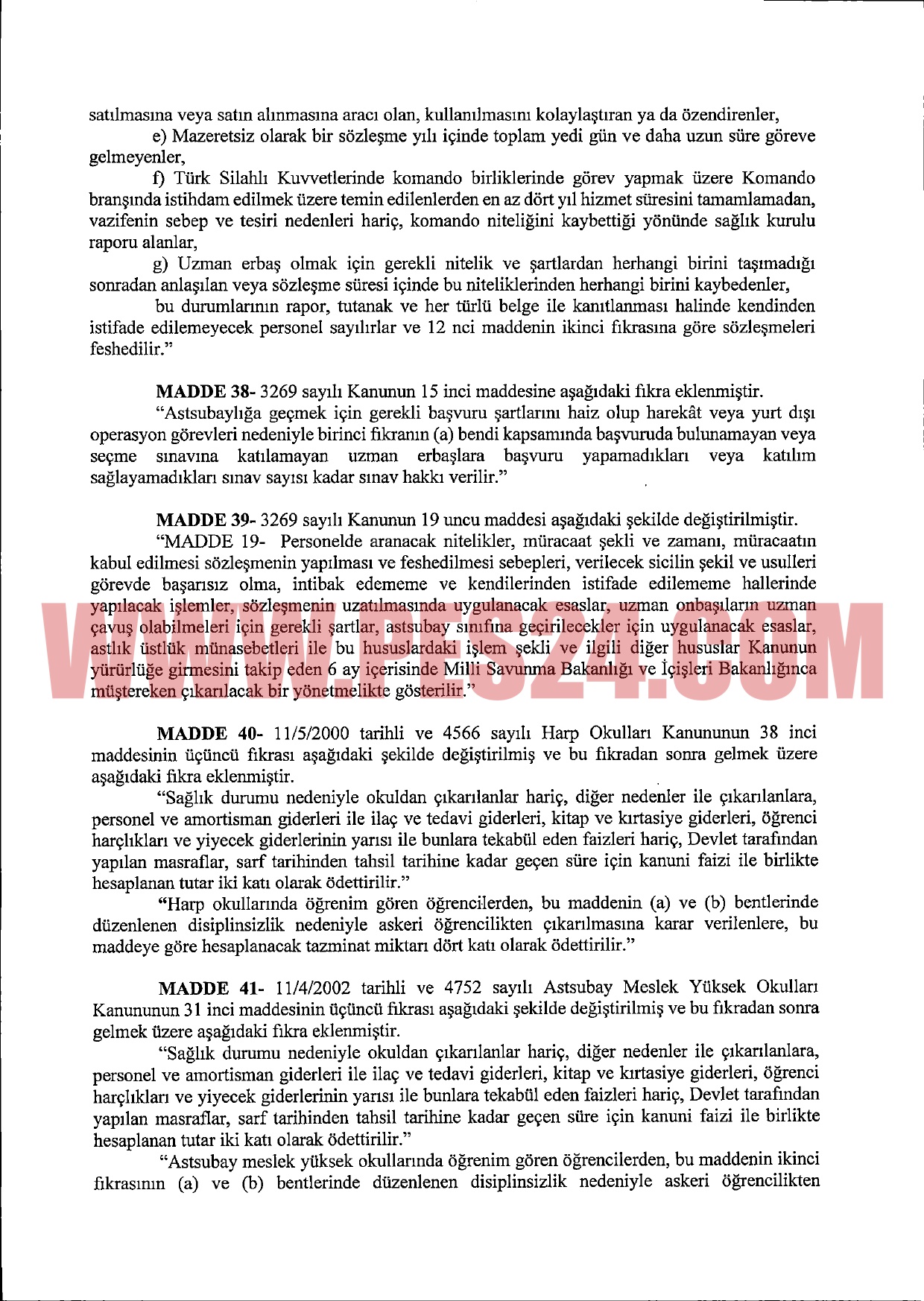 Astsubay meslek yüksekokullarında öğrenim gören öğrencilerden, disiplinsizlik nedeniyle askeri öğrencilikten çıkarılmasına karar verilenler de hesaplanacak tazminat miktarının dört katını ödeyecek.