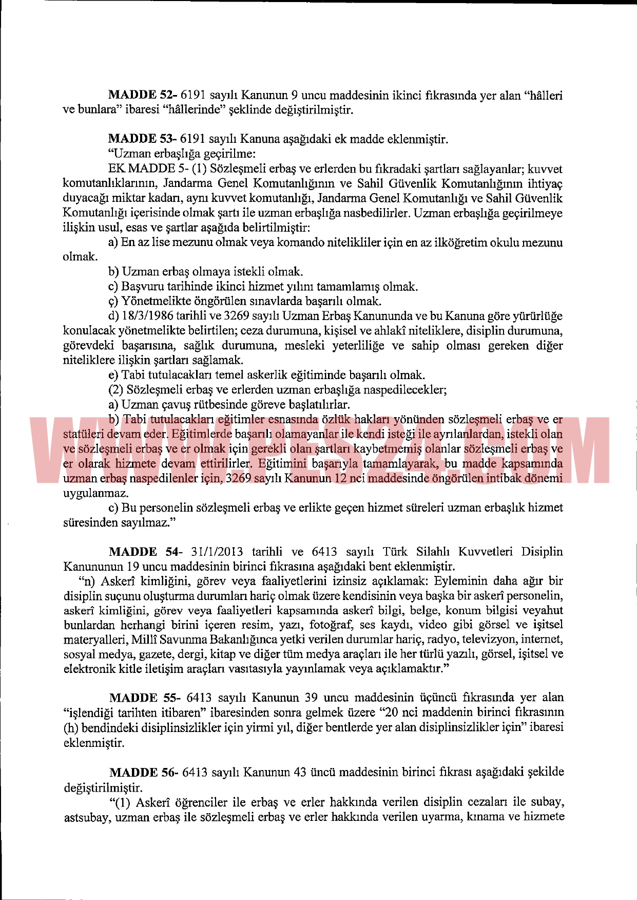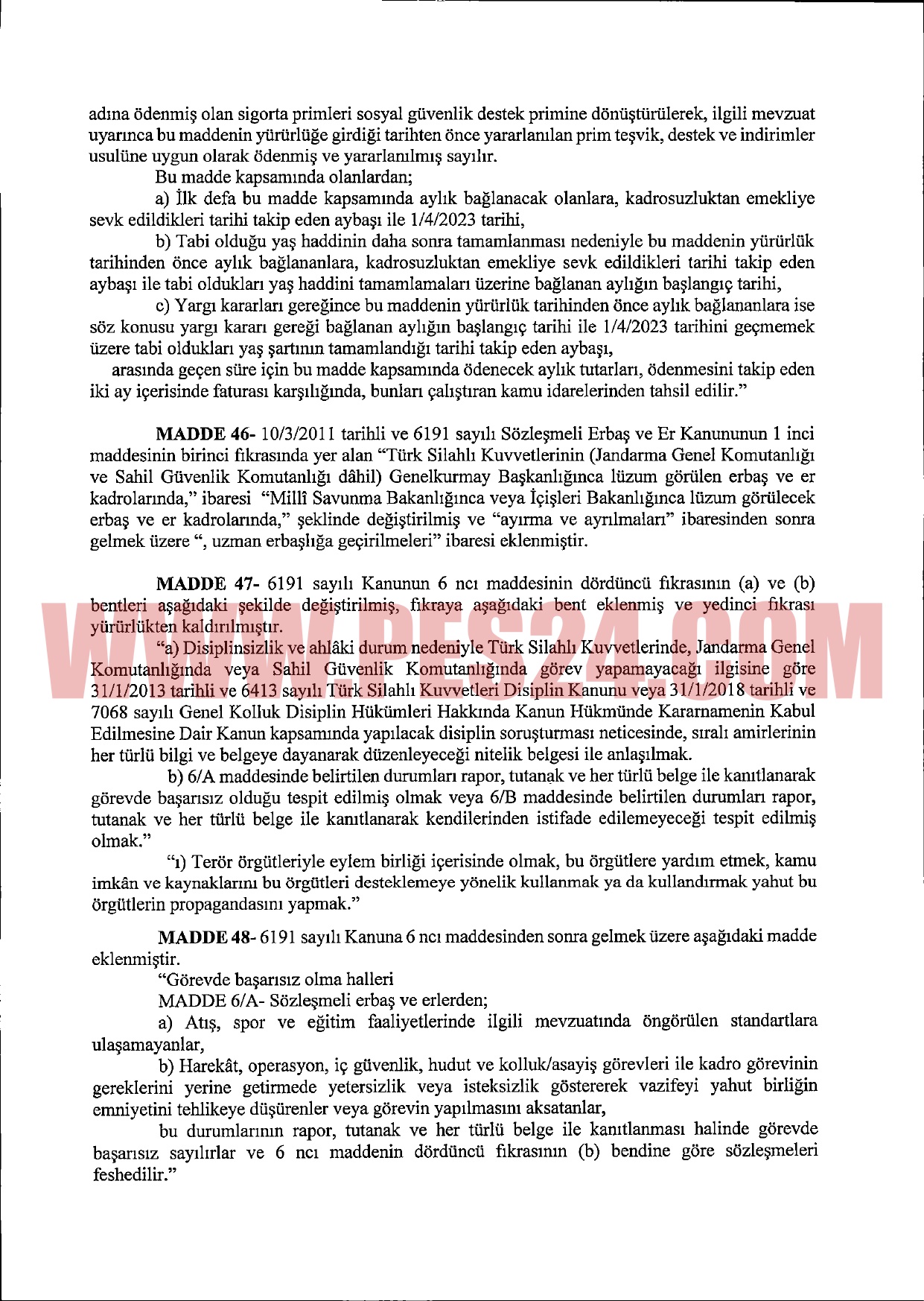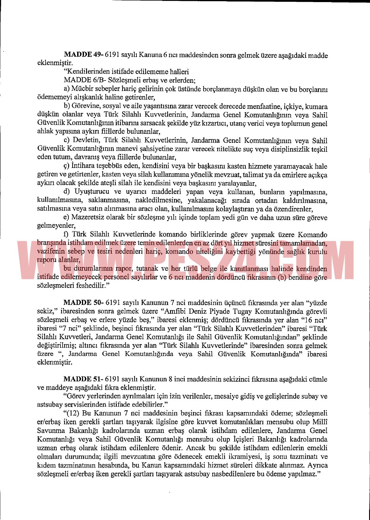SÖZLEŞMELİ ERBAŞ VE ER KANUNU’NDA DÜZENLEME