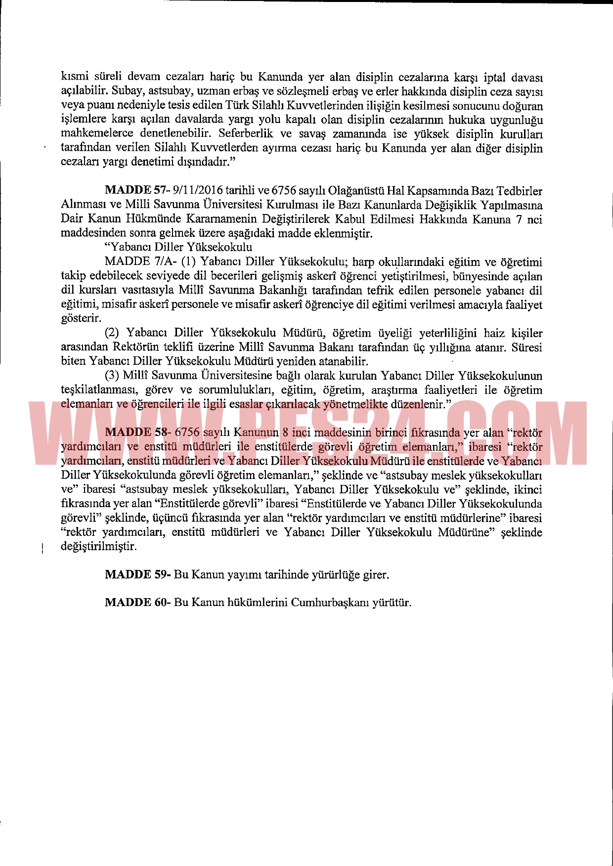 Milli Savunma Üniversitesi teşkilatına Yabancı Diller Yüksekokulu dahil ediliyor. Yabancı Diler Yüksekokulu, harp okullarındaki eğitim ve öğretimi takip edebilecek seviyede dil becerileri gelişmiş askeri öğrenci yetiştirilmesi, bünyesinde açılan dil kursları vasıtasıyla Milli Savunma Bakanlığı tarafından tefrik edilen personele yabancı dil eğitimi, misafir askeri personele ve misafir askeri öğrenciye dil eğitimi verilmesi amacıyla faaliyet gösterecek.