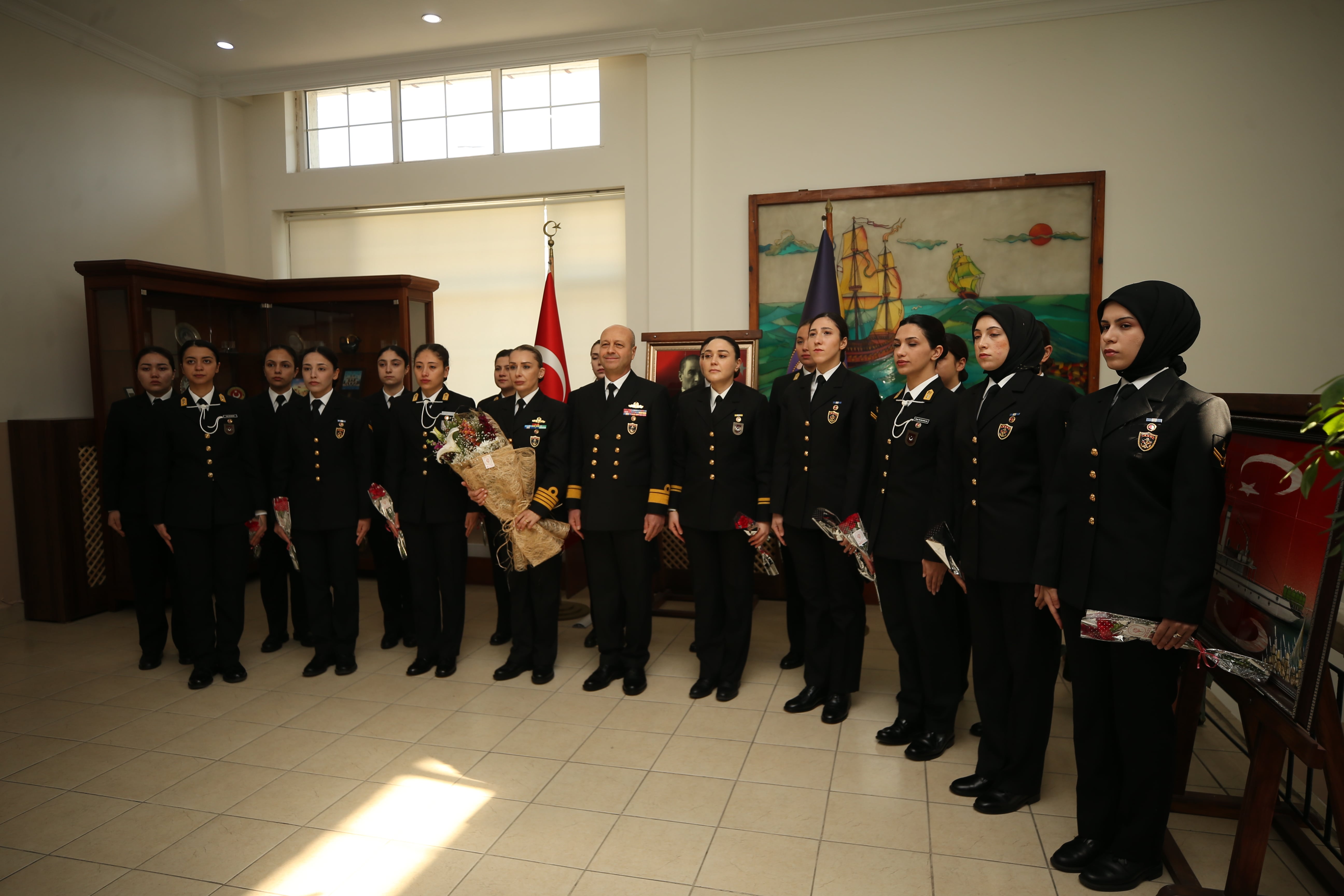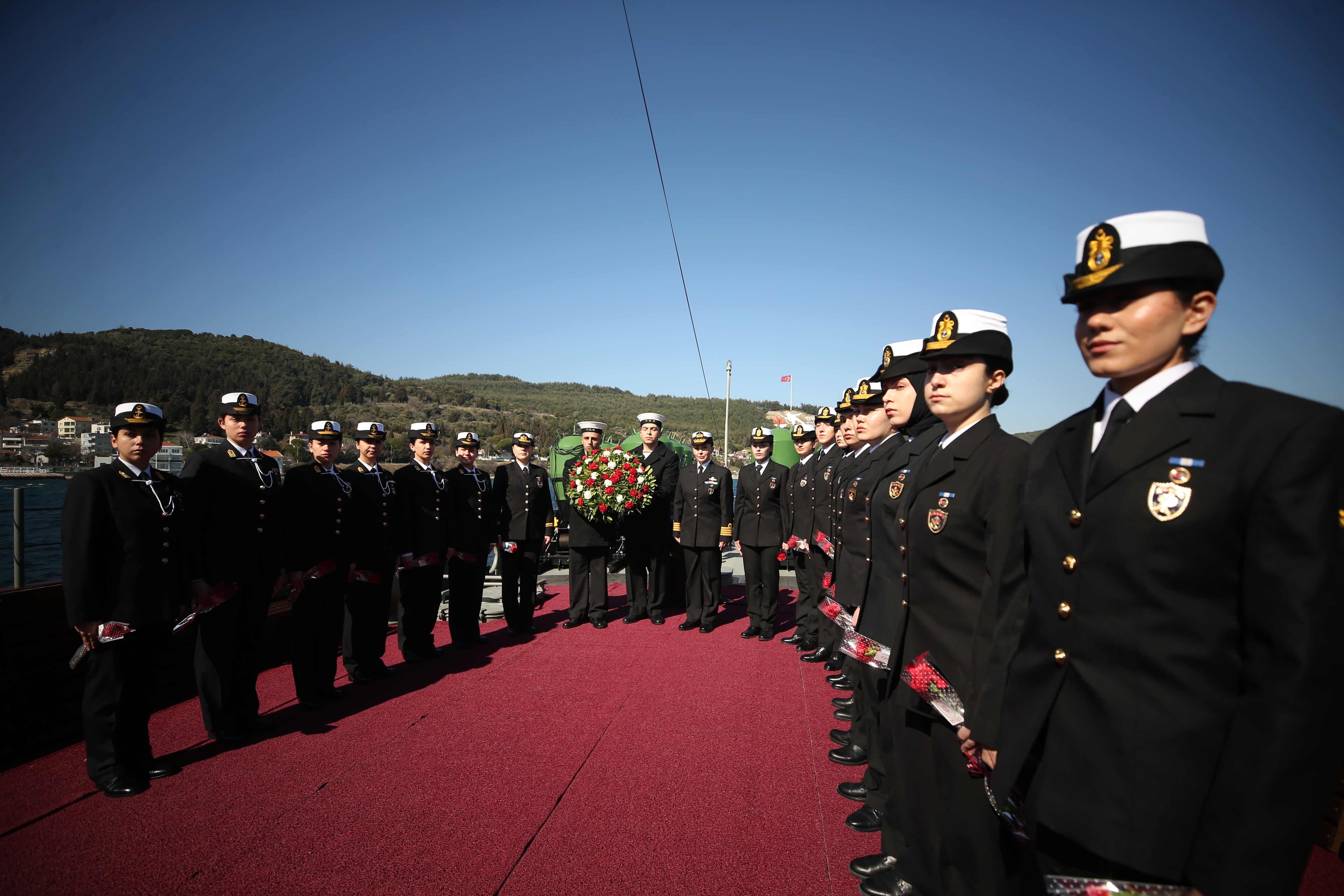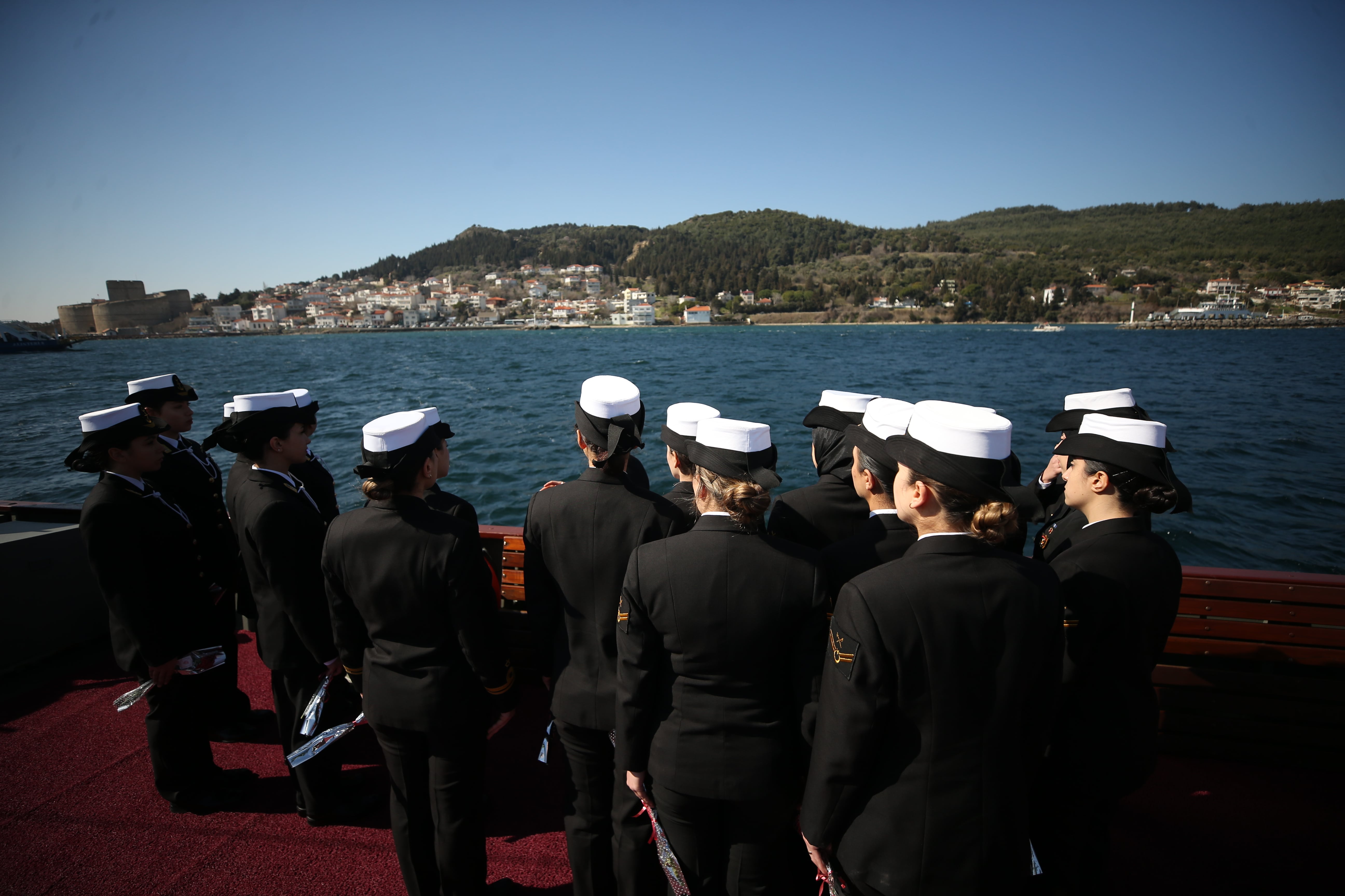 Ardından TCG Nusret Gemisi’ne geçen kadın denizciler, Çanakkale Deniz Müzesi Müdürü Deniz Albay Serhan Aras ile görüşerek denize çelenk bıraktı.