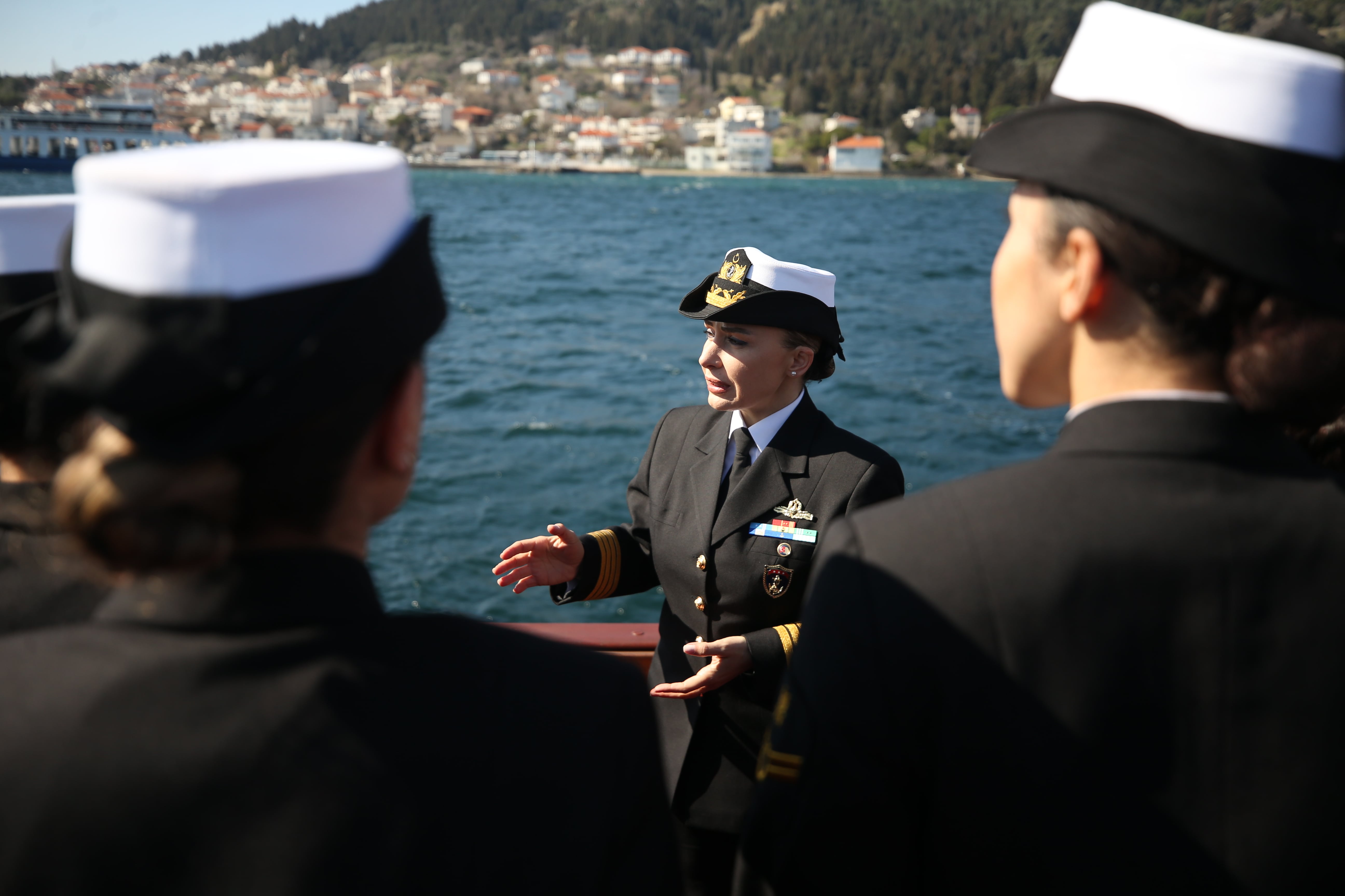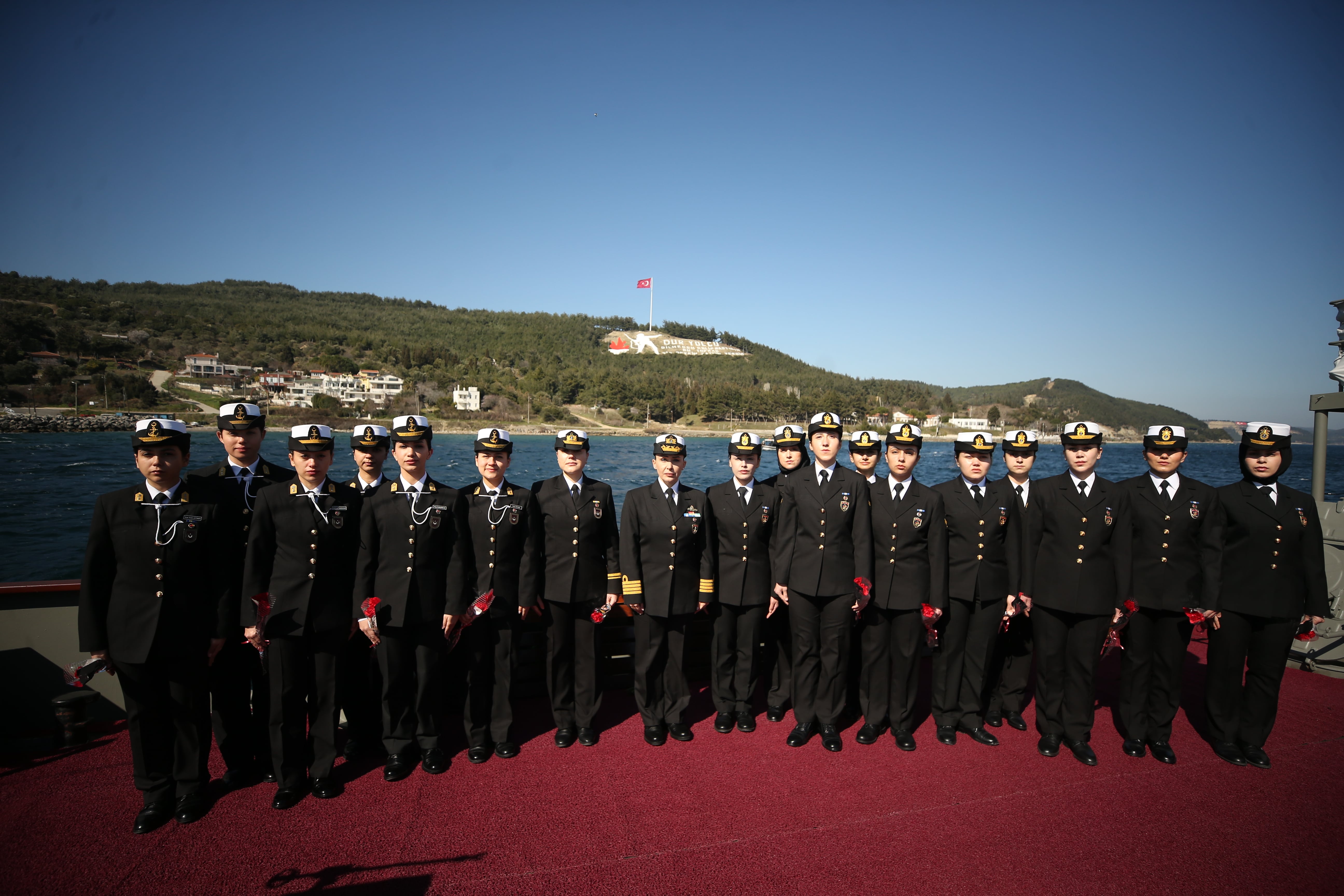 Kadın deniz astsubayları ve Milli Savunma Üniversitesi Deniz Harp Okulu’nun kadın öğrencileri, 8 Mart Dünya Kadınlar Günü kapsamında TCG Nusret Gemisi ile Çanakkale Boğazı’nda düzenlenen seyir faaliyetine katıldı.