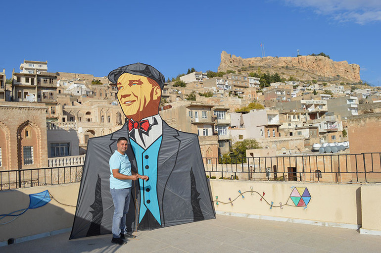 Mardin’de, 6 yaşında başlayan uçurtma tutkusunu sanatla buluşturup birçok ülkede festivallere katılan, 2023’te Çin’de düzenlenen uluslararası festivalde altın madalya alan Zahit Mungan (34), 9 metrekarelik Atatürk posterli uçurtmasını 29 Ekim Cumhuriyet Bayramı öncesi kentin semalarında uçurdu. Mardinli Zahit Mungan’ın 6 yaşındayken, ip bağladığı naylon poşeti uçurarak başladığı tutkusu, zamanla sanata dönüştü. 28 yıldır tutkusunu sürdüren Mungan, uçurtma geleneğini gelecek nesillere taşımak ve çocuklara sevdirmek için, doğup büyüdüğü evi atölyeye çevirdi. Burada kendine özgü profesyonel uçurtmalar tasarlayıp imal eden Mungan, kırkyama tekniğiyle 2 bin parçayı bir araya getirerek 5 ayda hazırladığı tavus kuşu uçurtmasıyla, 2023 yılında Çin’de düzenlenen 40’ıncı ‘Weifang Uluslararası Uçurtma Festivali’nde altın madalya aldı. Mungan, ayrıca Çin’in yanı sıra son 20 yılda yurt içinde ve Malezya, Tayland, Hindistan, Ukrayna, Malta, Güney Afrika, Dubai, Endonezya, Fransa gibi 38 ülkeyi gezerek, 40’ın üzerinde festivale katıldı. Uçurtma kültürünün yok olmaması için öğrenmek isteyenlere de uçurtma yapmayı öğreten Mungan, hazırladığı 9 metrekarelik Atatürk posterli uçurtmasını 29 Ekim Cumhuriyet Bayramı öncesi Mardin’de gökyüzüyle buluşturdu.
