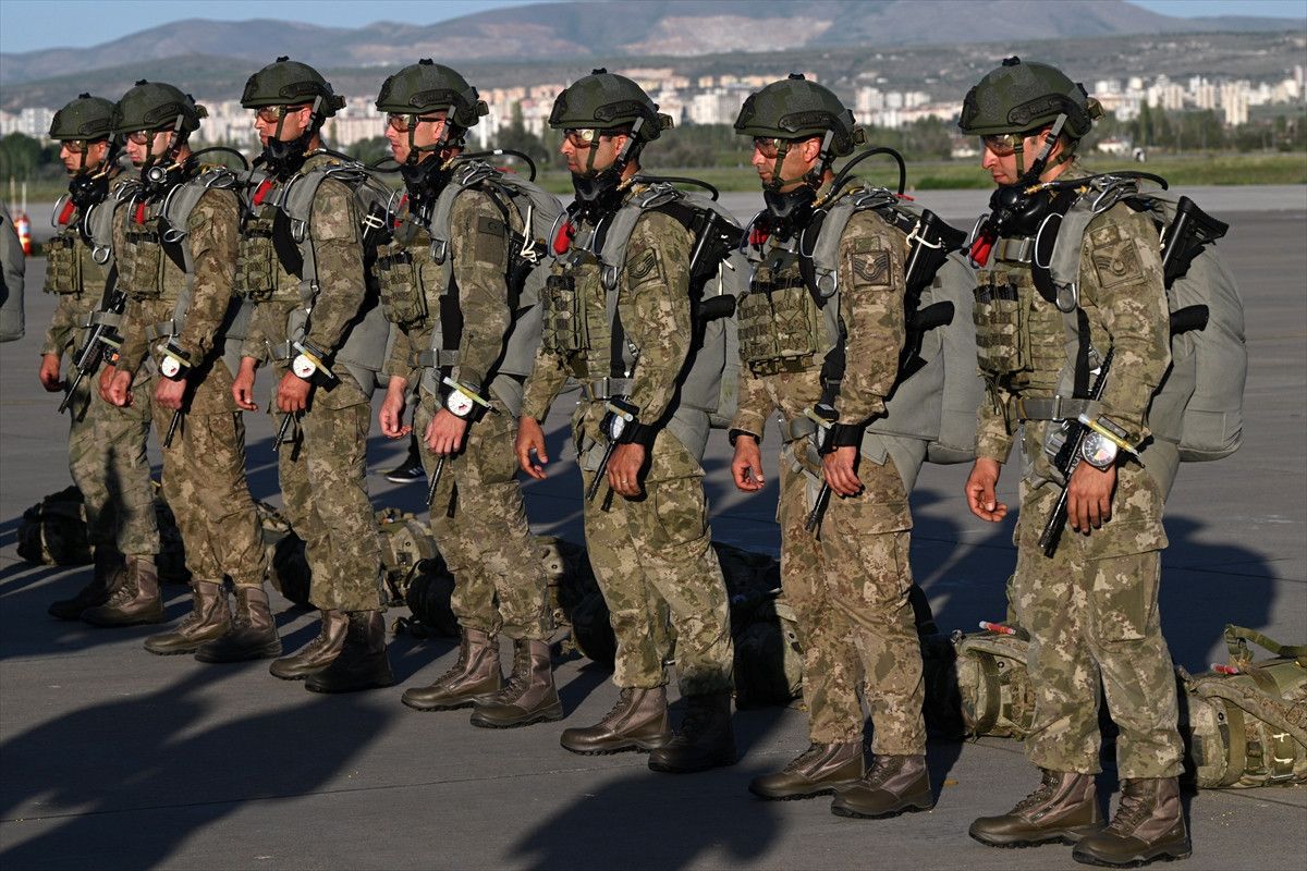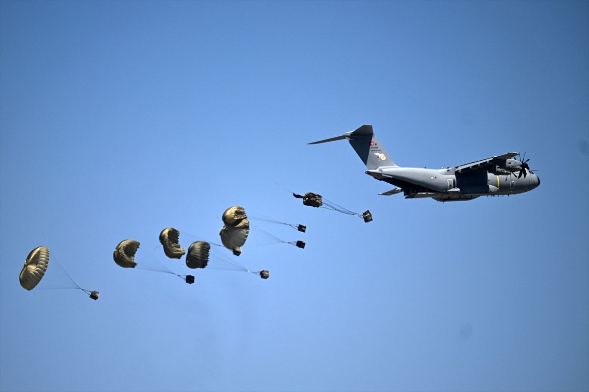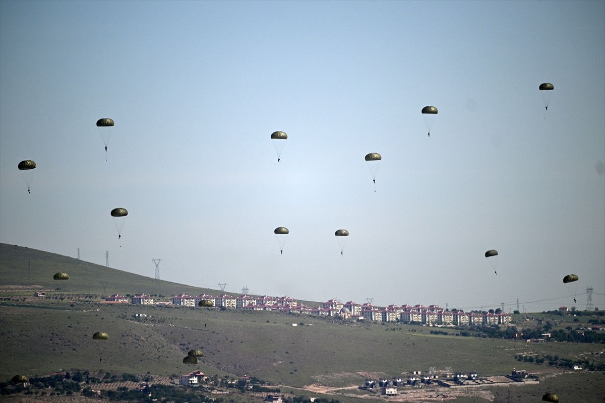 Tatbikat senaryosu kapsamında 12. Hava Ulaştırma Ana Üs Komutanlığı’ndan havalanan C-130 ve C-160 nakliye uçaklarındaki 265 paraşütçü komando yaklaşık 4 bin metre yükseklikten bölgeye iniş yaptı.