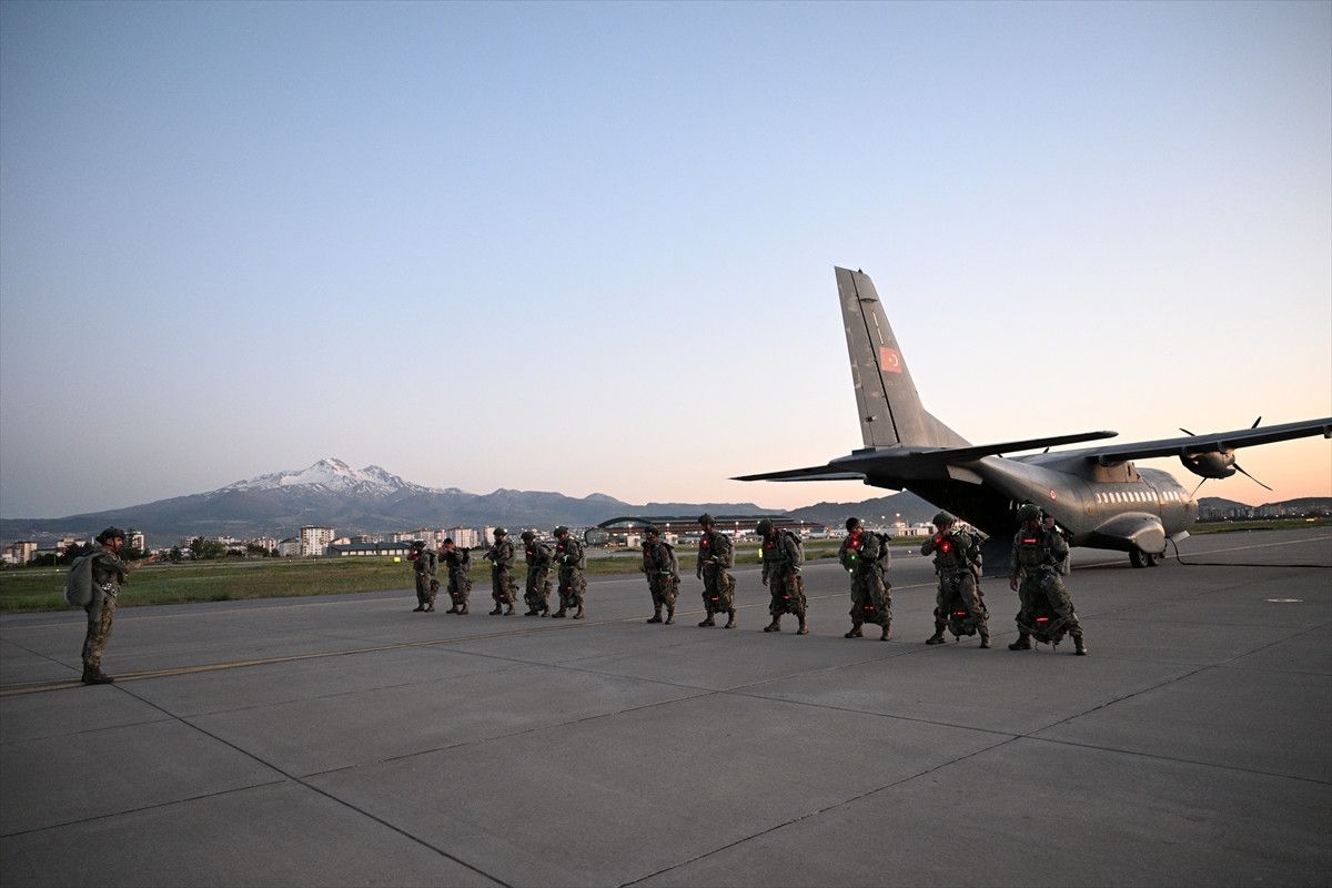 12. Hava Ulaştırma Ana Üs Komutanlığında 12 kişilik komando timi, bugün ise CN-235 CASA tipi uçağa binerek Şehit Teğmen Hasan Bak Atma ve Atlama Sahası’na paraşütle iniş yapıp, operasyon öncesi sahanın güvenliğini aldı.