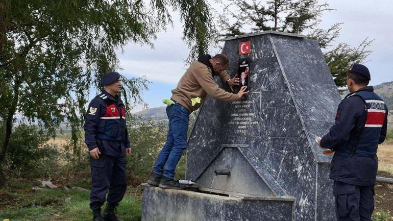 Eskişehir’de, şehit Jandarma Uzman Çavuş Tarkan Karaca (24) adına yaptırılan hayrat çeşmesindeki Türk bayrağı ve şehidin fotoğrafı kimliği belirsiz kişi ya da kişilerce yerinden sökülerek tahrip edildi. Konuyla ilgili Eskişehir Cumhuriyet Başsavcılığı soruşturma başlattı.