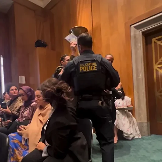 ABD’de iki savaş gazisi, Albay Anthony Aguilar ve Yüzbaşı Josephine Guilbeau, Washington’da Senato’daki bir duruşmayı protesto ettikleri için zorla salondan çıkarılarak tutuklandı. Gaziler, ABD hükümetinin Gazze’de İsrail’in gerçekleştirdiği soykırıma ortak olduğunu haykırarak yöneticileri ve senatörleri hedef aldı.