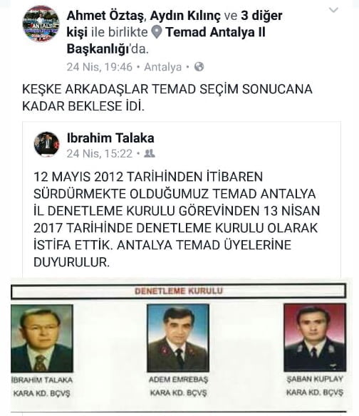 TEMAD Genel Başkanı Hamza DÜRGEN’in Antalya’da yapılacak olan Genel Kurula, üyelerle buluşmak üzere  katılma isteğine, Mustafa DEĞİRMENCİ’nin cevaben;  “Sen buraya gelme, oy aldığın yerlere git” şeklindeki saygı sınırlarını aşan ifadesinden dolayı ihraç edildiği gündeme gelmişti.