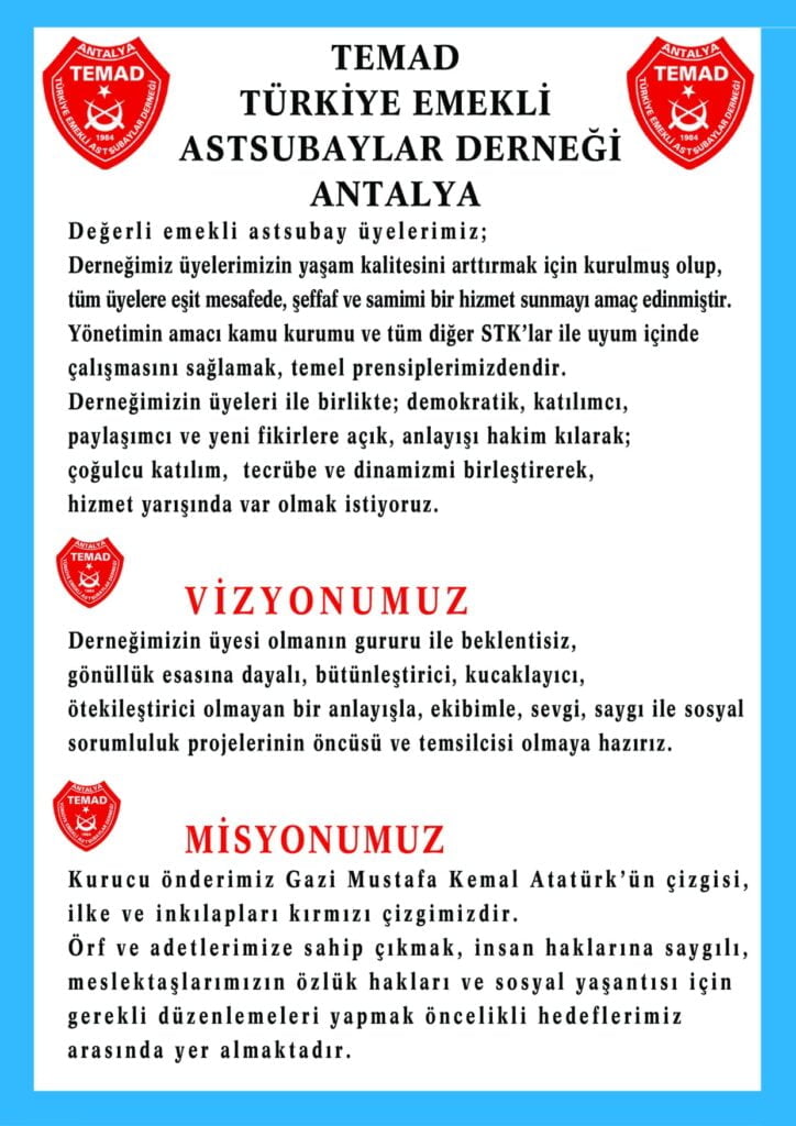 ANTALYA’DA EMEKLİ ASTSUBAYLAR TEMAD ÇATISI ALTINDA TOPLANACAK