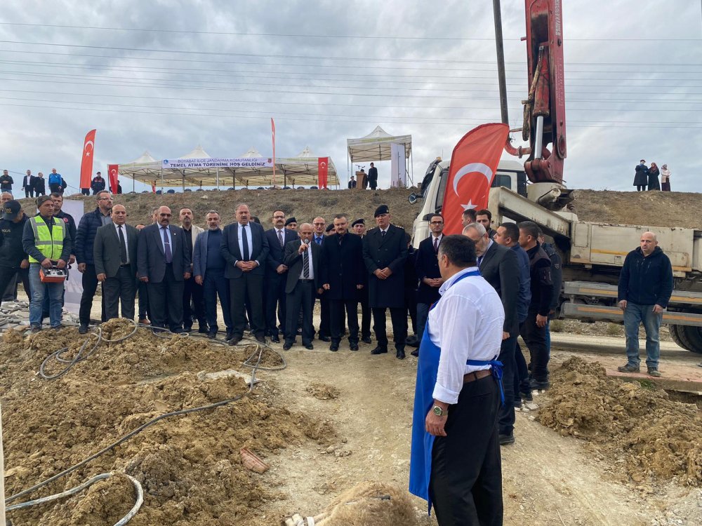 Temel atma töreni kurban kesimi sonrasında İlçe Müftüsü Mehmet Evigentürk’ün duasıyla devam etti. Binanın temeline harcı koyacak butona protokol üyeleri bastı.