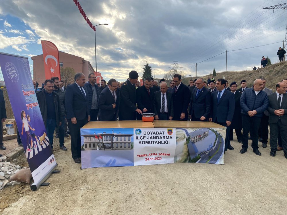 Boyabat’ta yeni ilçe jandarma komutanlığı karakol binasının temel atma töreni gerçekleştirildi. 24 Kasım 2023 Cuma günü saat 14:30’da yapılan programa Boyabat Kaymakamı Enver Yılmaz ,İl Jandarma Komutanı J.Kd. Alb. Ferhat Kuran, Boyabat Belediye Başkanı Hüseyin Coşar, Durağan Belediye Başkanı Ahmet Kılıçarslan, Cumhuriyet Başsavcısı Uğur Akın, Adli yargı, Adalet Komisyonu Başkanı Mehmet Çağrı Alperen , İlçe Jandarma Komutanı J. Yzb. Ali Kızıltaş , İlçe Emniyet Müdürü Yusuf Gül ve kurum müdürleri katıldılar.